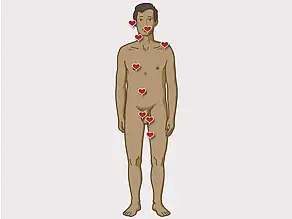 Sexuelles Vergnügen entsteht durch Berührung an vielen Stellen des Körpers. Manche Stellen sind besonders empfindlich. Diese Stellen heißen erogene Zonen. Das sind zum Beispiel: