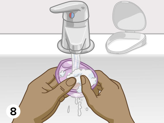- Помийте діафрагму теплою водою з милом та добре сполосніть. Після цього залиште її висохнути на повітрі. Зберігайте її в спеціальній коробці.